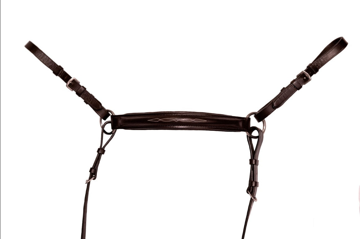 Artisanal Fancy Stitching: Detailed with intricate white contrast stitching, this breastplate offers a polished, professional look that transitions seamlessly from the training ring to local shows.