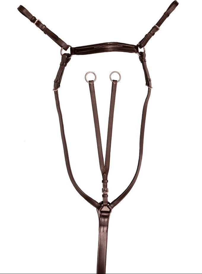 Integrated Running Attachment: Includes a removable and fully adjustable running martingale attachment. This helps maintain a steady contact and encourages proper head carriage without the fixed restriction of a standing martingale—perfect for the jumping disciplines.